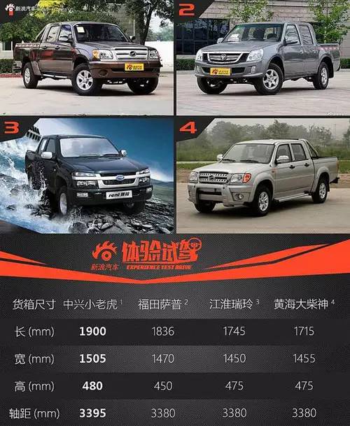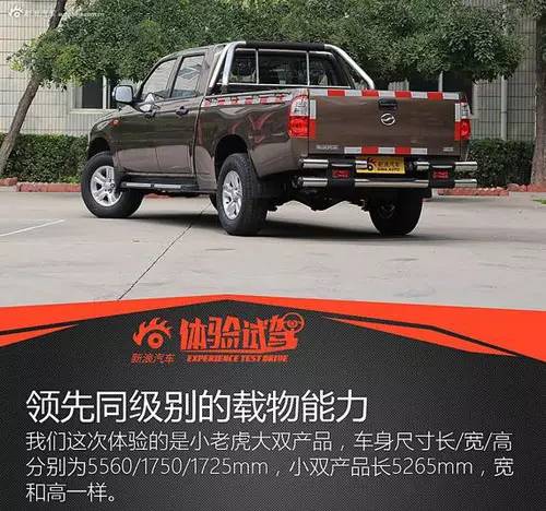 這里又出現(xiàn)了一個新名詞:大雙、小雙。細(xì)心的網(wǎng)友可能已經(jīng)發(fā)現(xiàn),大雙的車身長度比小雙還要短。在皮卡中分為大、中、小三個級別,劃分標(biāo)準(zhǔn)并不是根據(jù)車身尺寸,而是根據(jù)貨箱以及軸距尺寸來劃分,其中貨箱尺寸的權(quán)重要比軸距更大一些。雙的意思則是指雙排座椅。