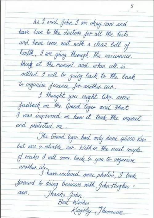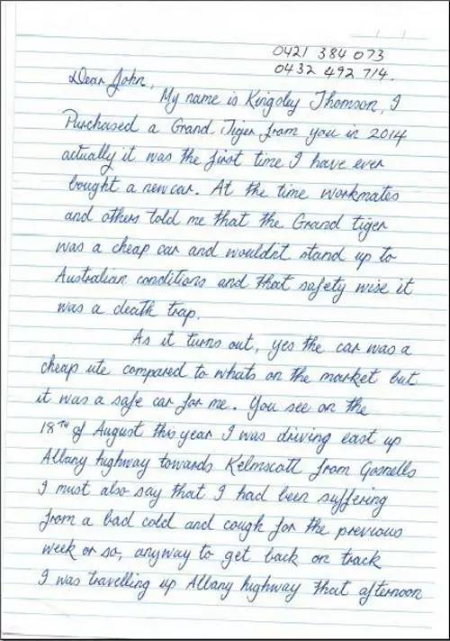 澳大利亞4S店收到當(dāng)?shù)剀囍鞯囊环飧兄x信。