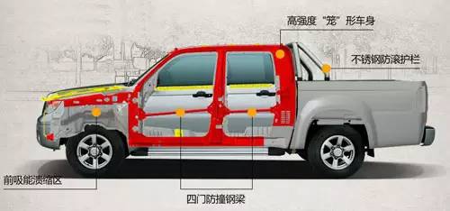 虎子擁有一身高強(qiáng)度“籠”形鋼性車身,設(shè)有前吸能潰縮區(qū),四門防撞鋼梁,并裝有不銹鋼防滾護(hù)欄。
